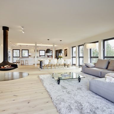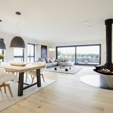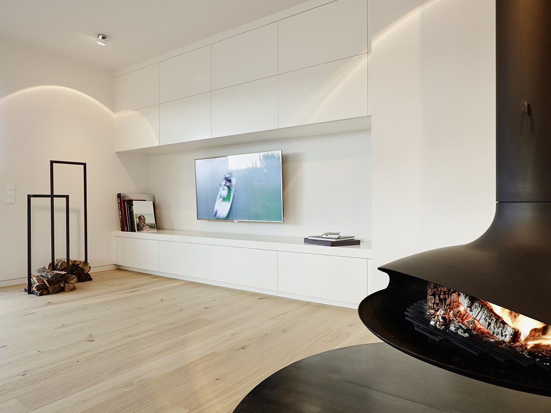 Penthouse Kamin hängend Loft Lichtplanung Parkett modern hell wohnlich Atmosphäre