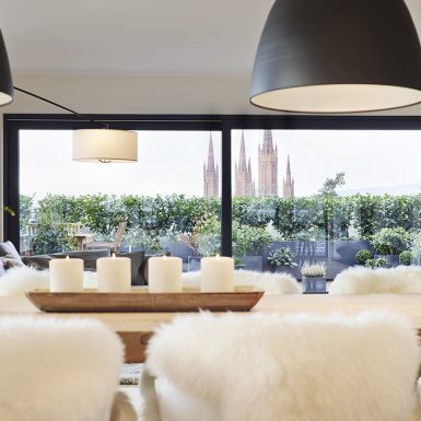 Ein cooles Penthouse ganz hoch oben über den Dächern der Stadt ist für viele ein absoluter Wohntraum. Ein Ehepaar hat sich diesen Traum erfüllt und ihn von uns zum Leben erwecken lassen. Das Ergebnis: ein Luxusdomizil, das sowohl Style als auch Gemütlichkeit vermittelt und mit Charakter und Persönlichkeit überzeugt – und dem die gesamte hessische Landeshauptstadt im wahrsten Sinne des Wortes zu Füßen liegt.